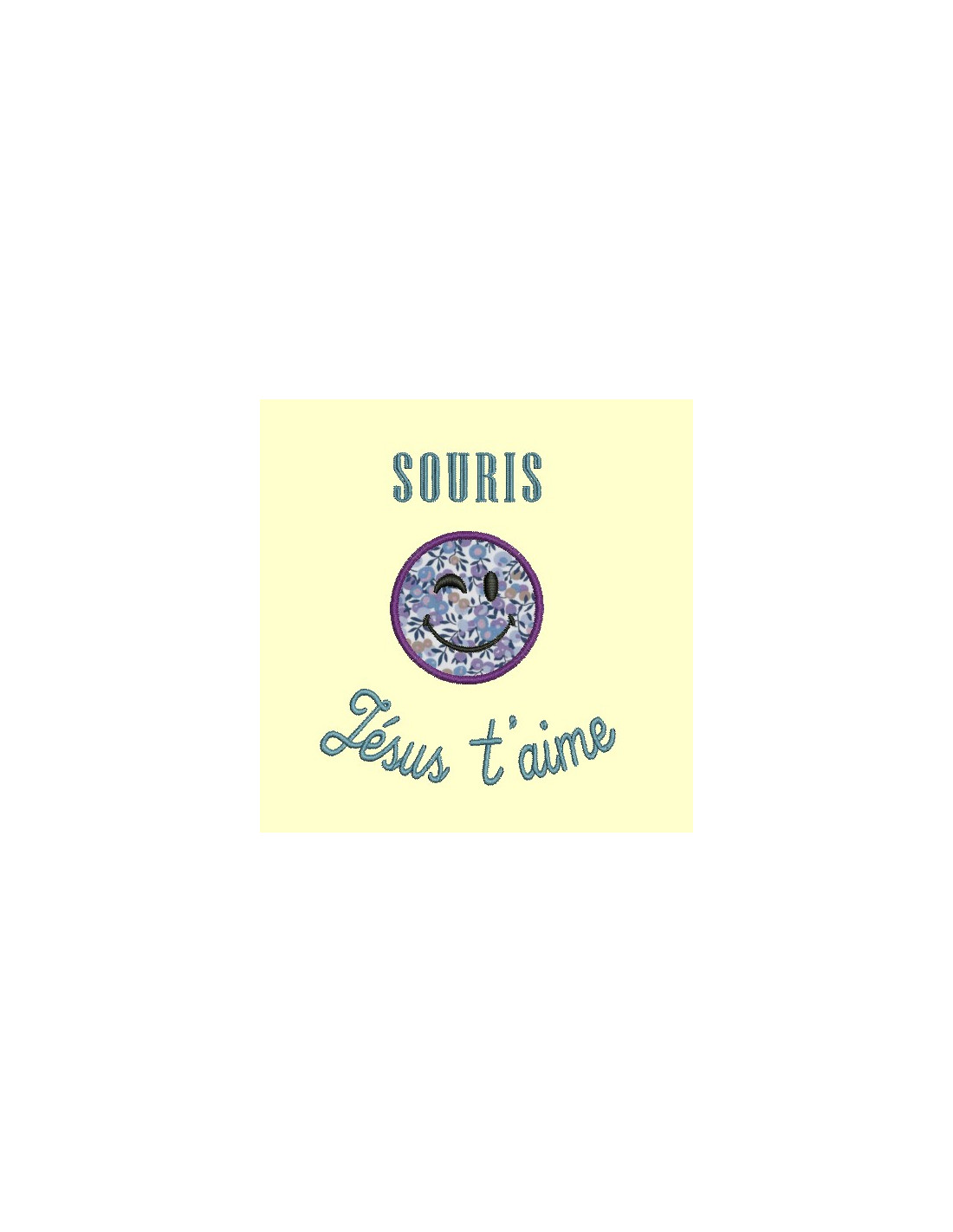 Motif de broderie machine spi d'une phrase "Souris, Jésus t'aime" !