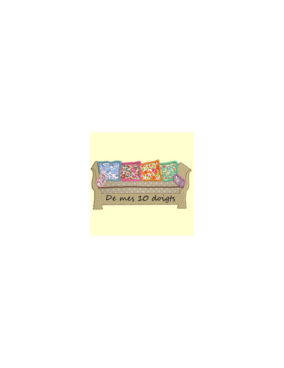 Motif de broderie machine d'un lit bateau en banquette et ses coussins en appliqué.