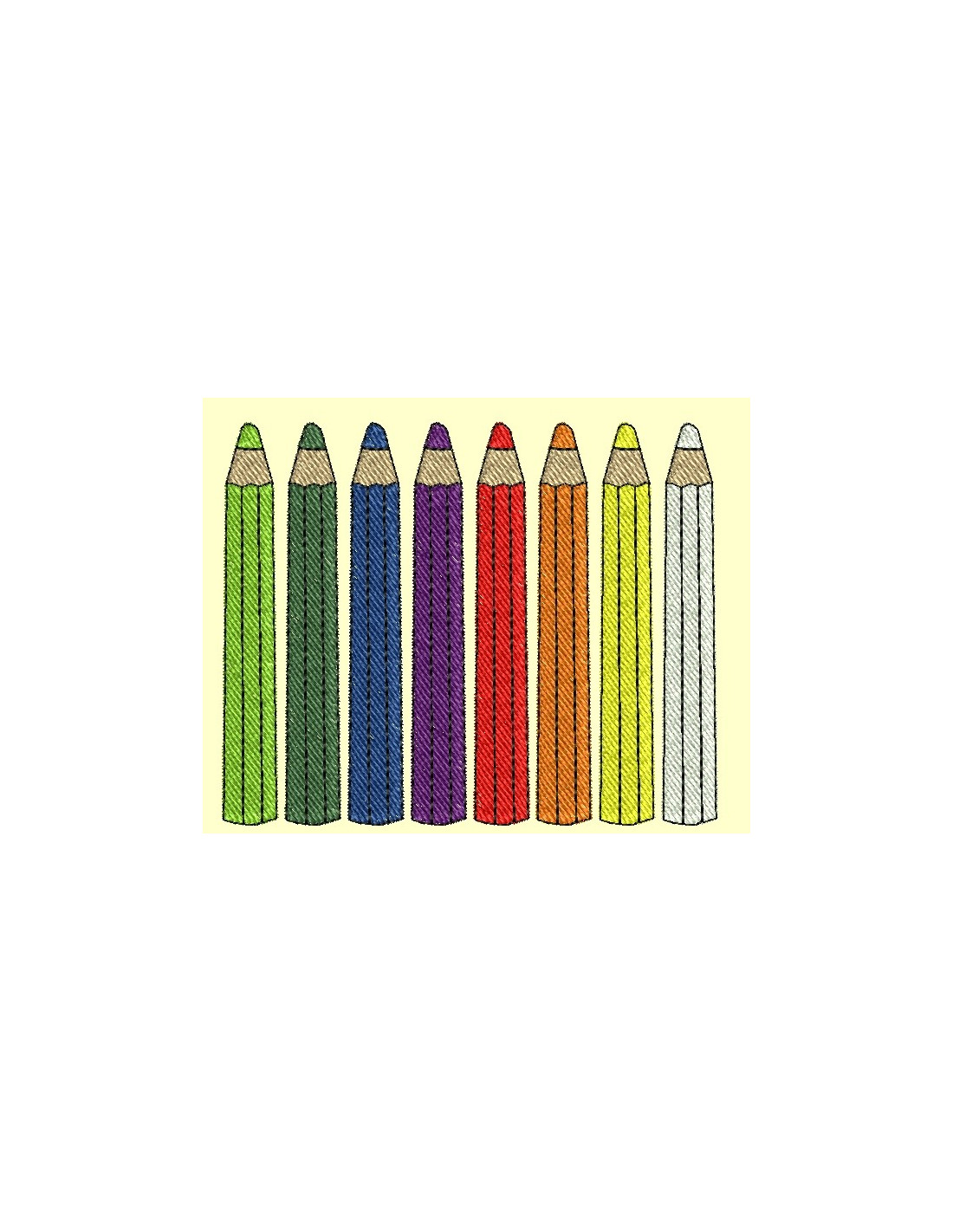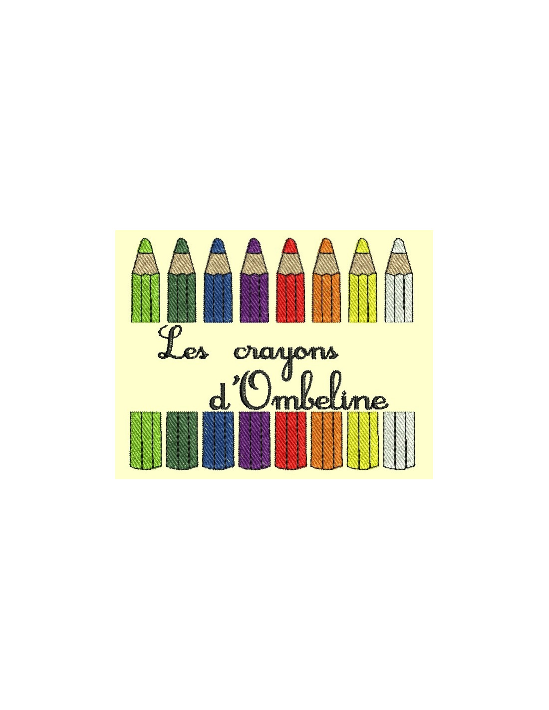 4 motifs à broder mettant en scène des crayons pour décorer trousses, cartable, protege cahier en tissus, tabliers ... A vous de voir !