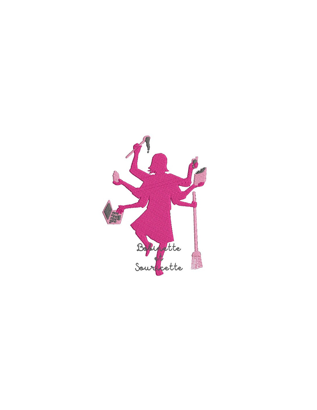 Motif à broder représentant une femme avec de multiples bras : faire plusieurs choses à la fois est bien une des spécialités féminines !!!