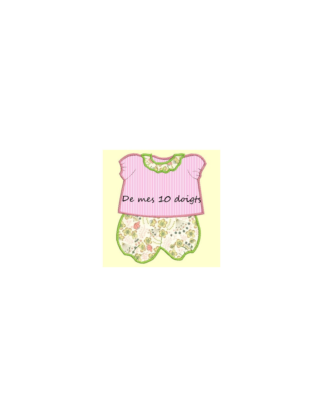Motif à broder en appliqué proposé en 2 tailles : tunique col volanté et bloomer