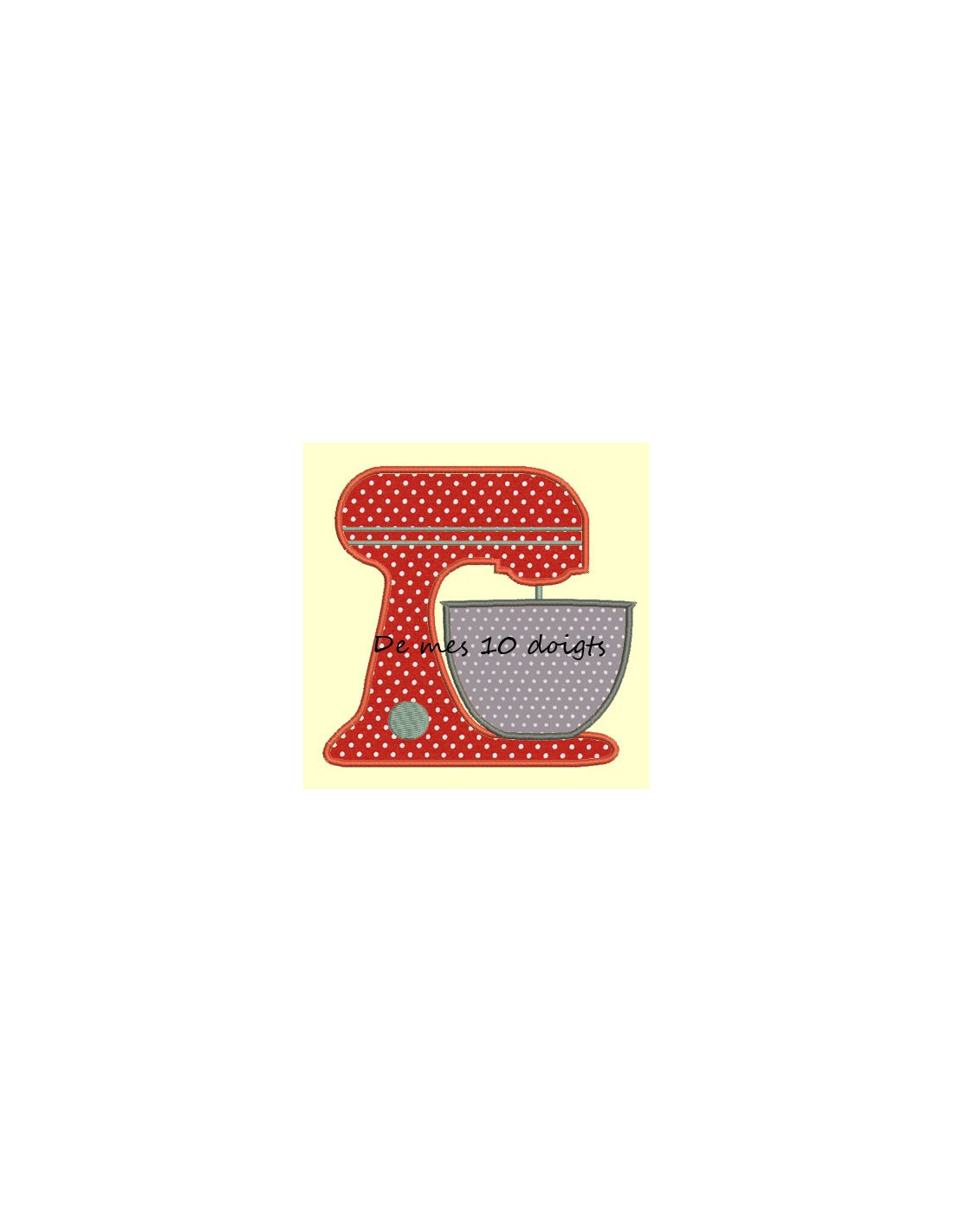 Motif de broderie machine d'un robot de cuisine vintage. 3 tailles : 8x7, 10x10 et 13x12 cm.