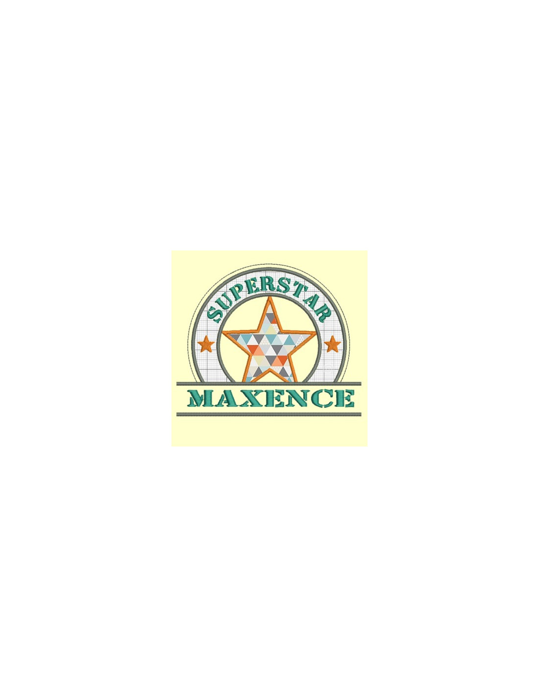 Motif à broder représentant un logo avec une étoile à personnaliser d'un prénom. Parfait pour toutes les superstars de votre entourage !