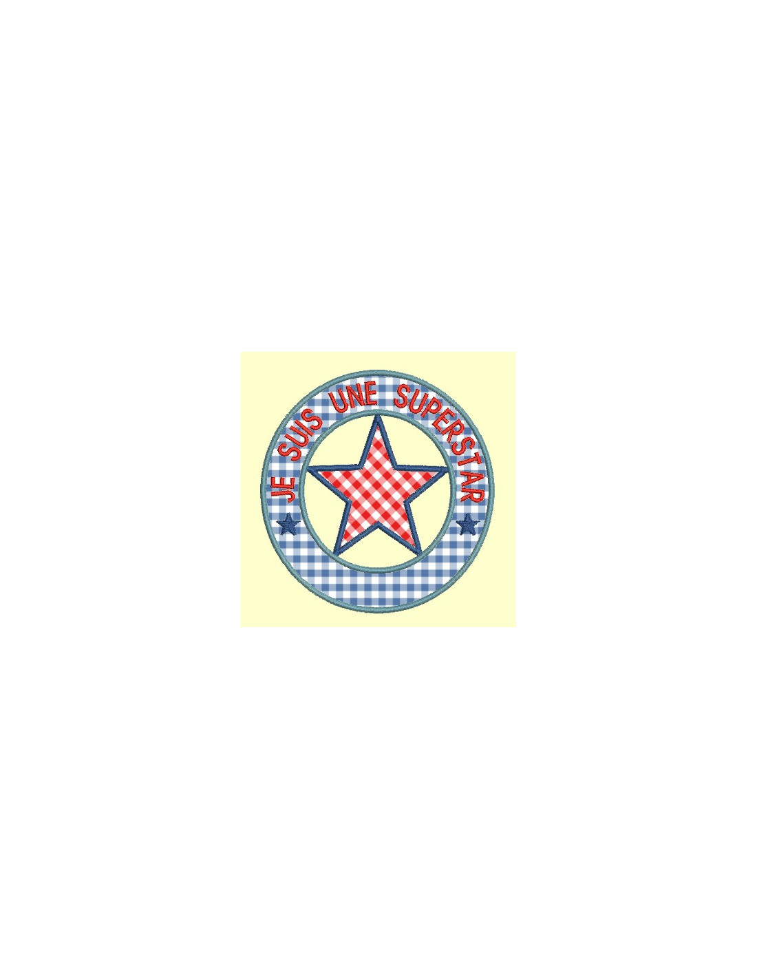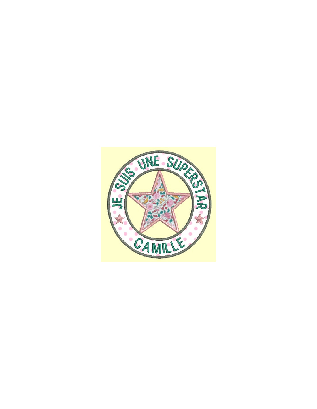 Motif de broderie machine représentant un logo à personnaliser d'un prénom "je suis une superstar"