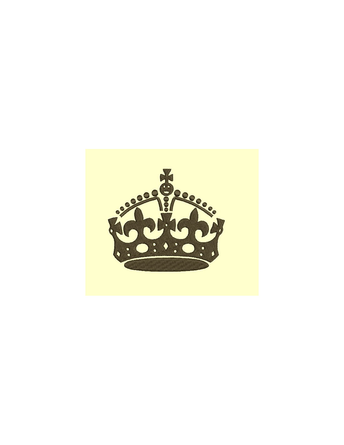 - en bonus : 2 fichiers couronnes, avec de grandes couronnes keep calm pour permettre de grandes oeuvres brodées, tout est permis pour le texte, il n'y aura plus qu'à le programmer avec votre machine. Tailles des 2 couronnes offertes : 6x5,3cm et 5x8,5cm.