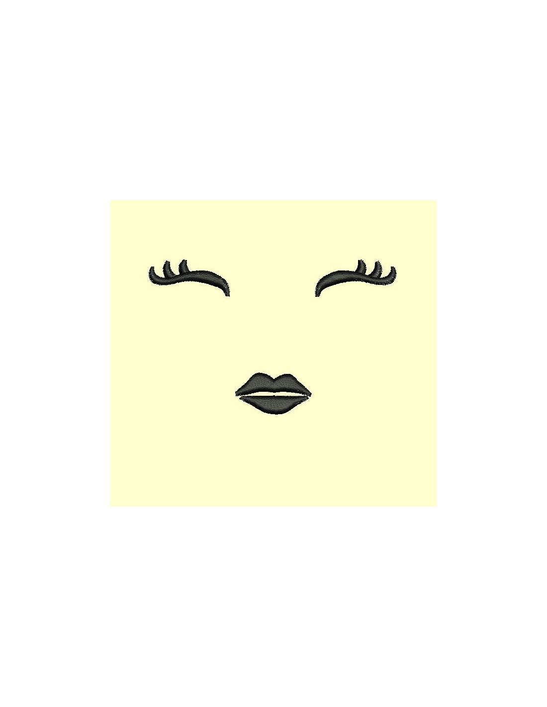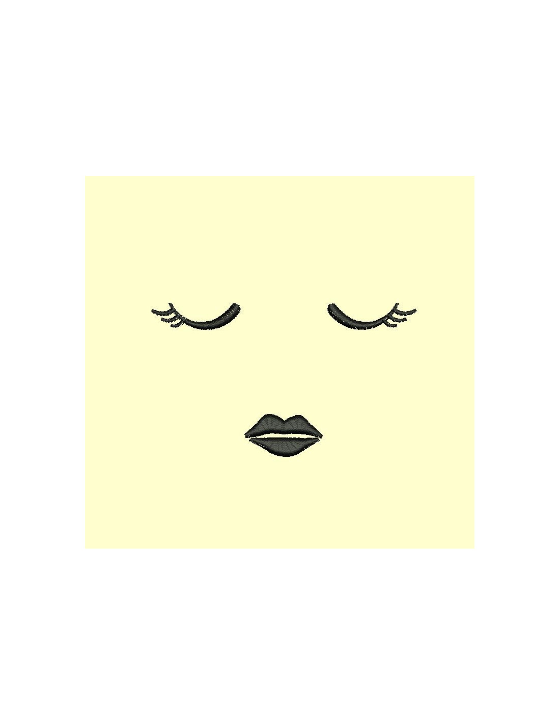 Motif de broderie machine représentant des yeux seuls ou un ensemble yeux/bouche à broder sur des coussins
