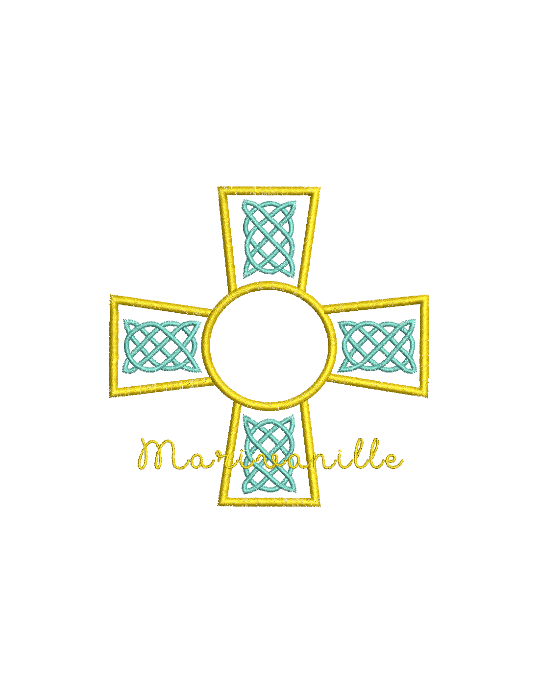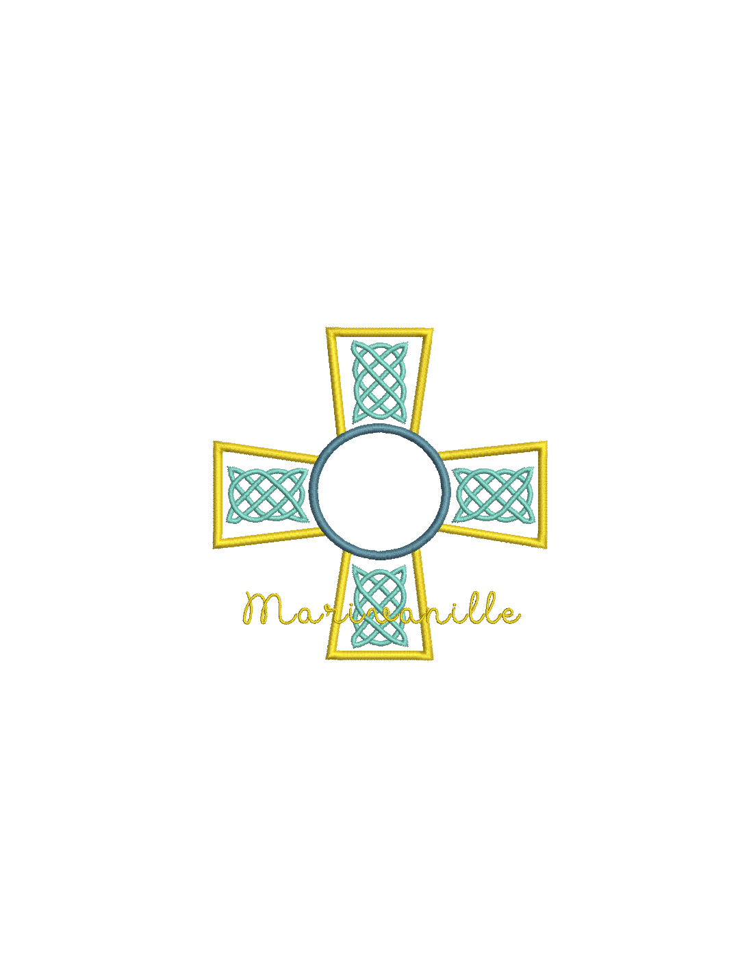 Une croix avec des arabesques avec plusieurs versions de couleurs et en Tout Dans le Cadre.