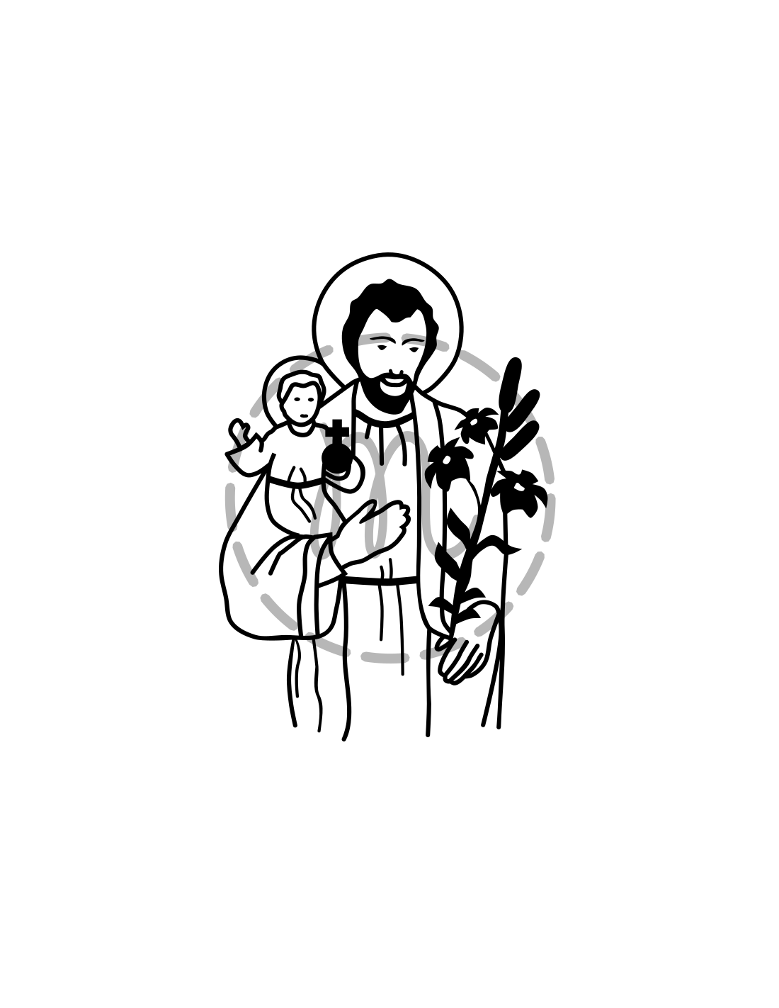 Religieux Saint Joseph - 2 formats DMDD323 5,40 € D'après un dessin de Madame Carabosse (http://madamecarabosse.canalblog.com/) pour Demes10doigts. Motif à broder Saint Joseph en 2 tailles : 5x10cm et 5x14cm. Ajouter au panier