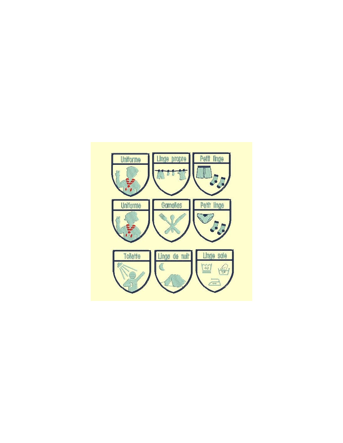 9 Ecussons pour des sacs de camps - 2 tailles - appliqué