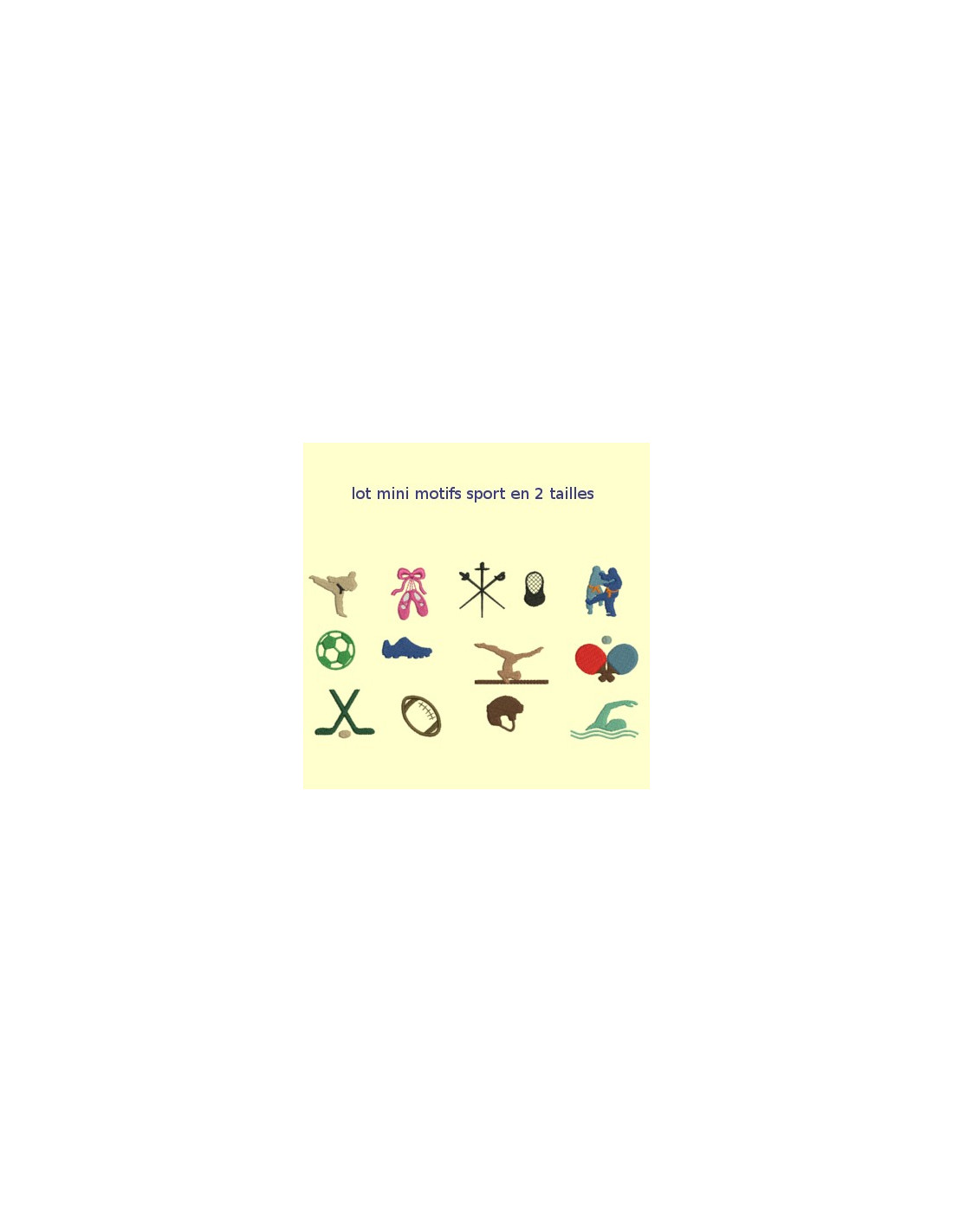 Lot de 13 minis motif de broderie machine sur le thème du sport, 2 tailles.