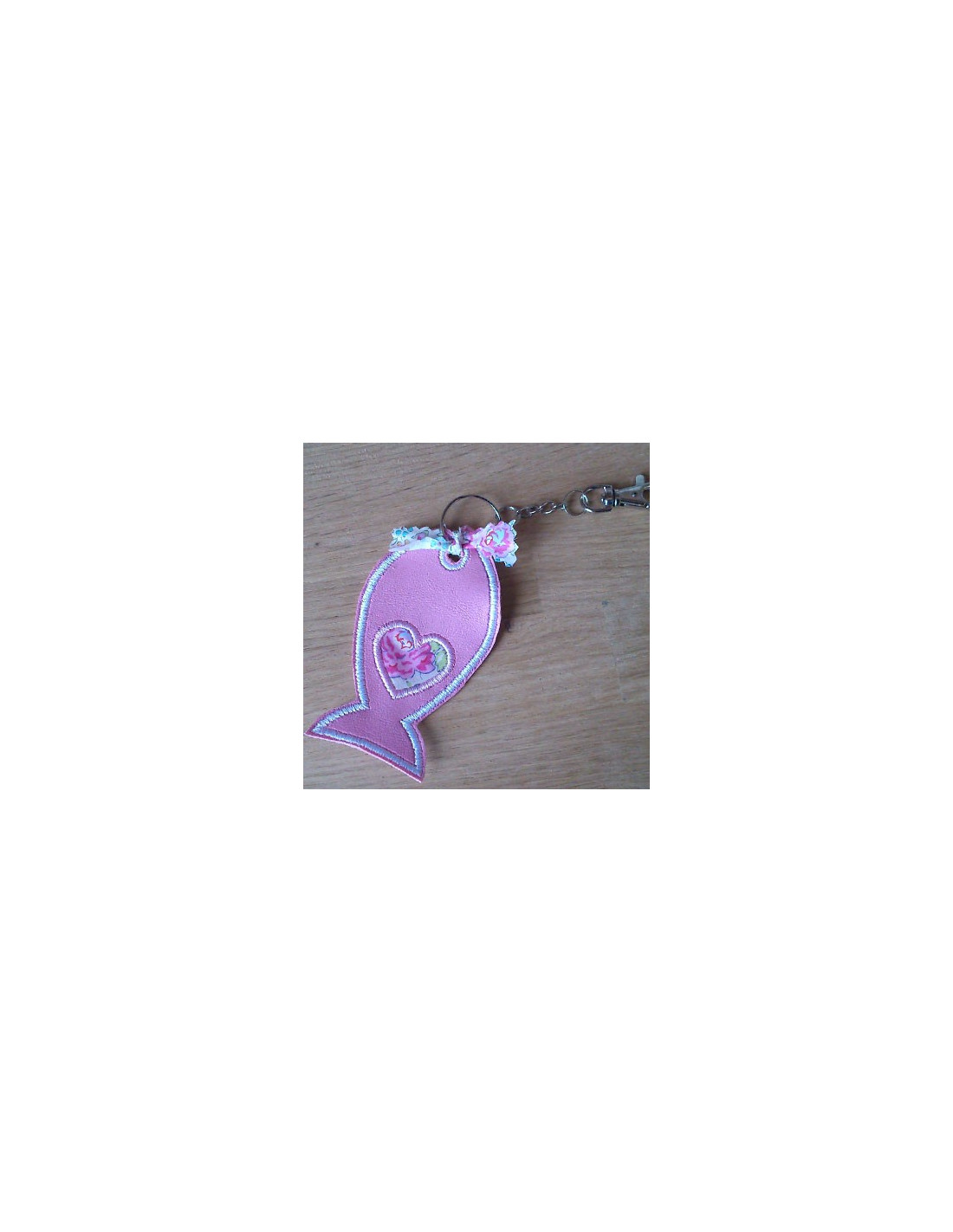 Motif à broder permettant de réaliser un porte clef en forme de poisson avec un coeur ou une étoile en appliqué.
