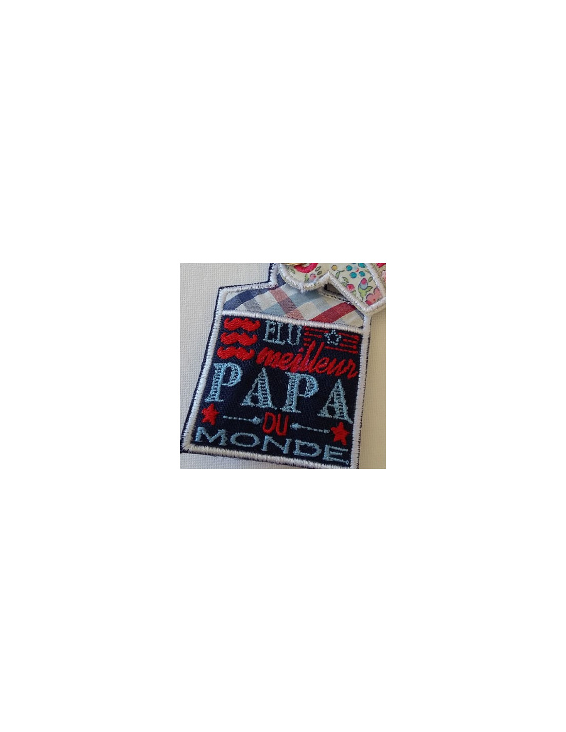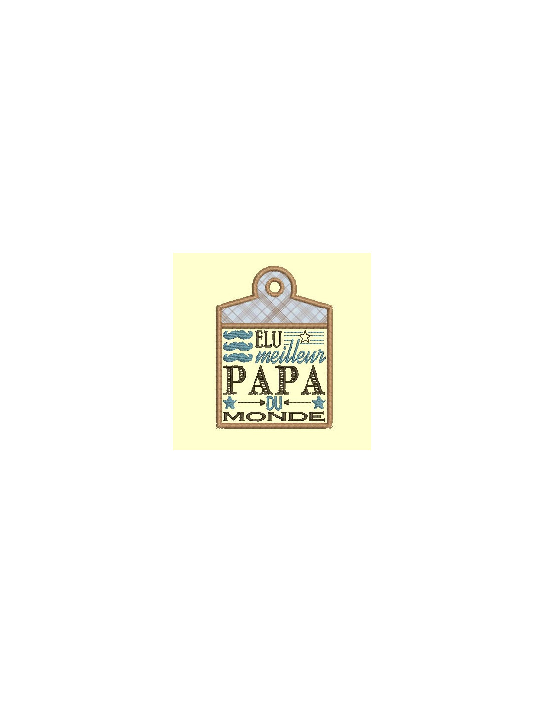 Motif à broder permettant de réaliser un porte clef pour la fête des pères avec le texte : "élu meilleur papa du monde"